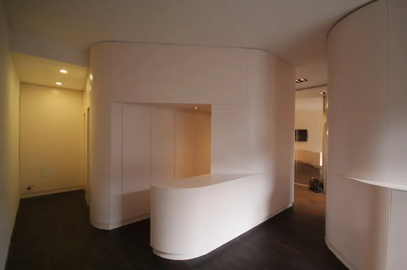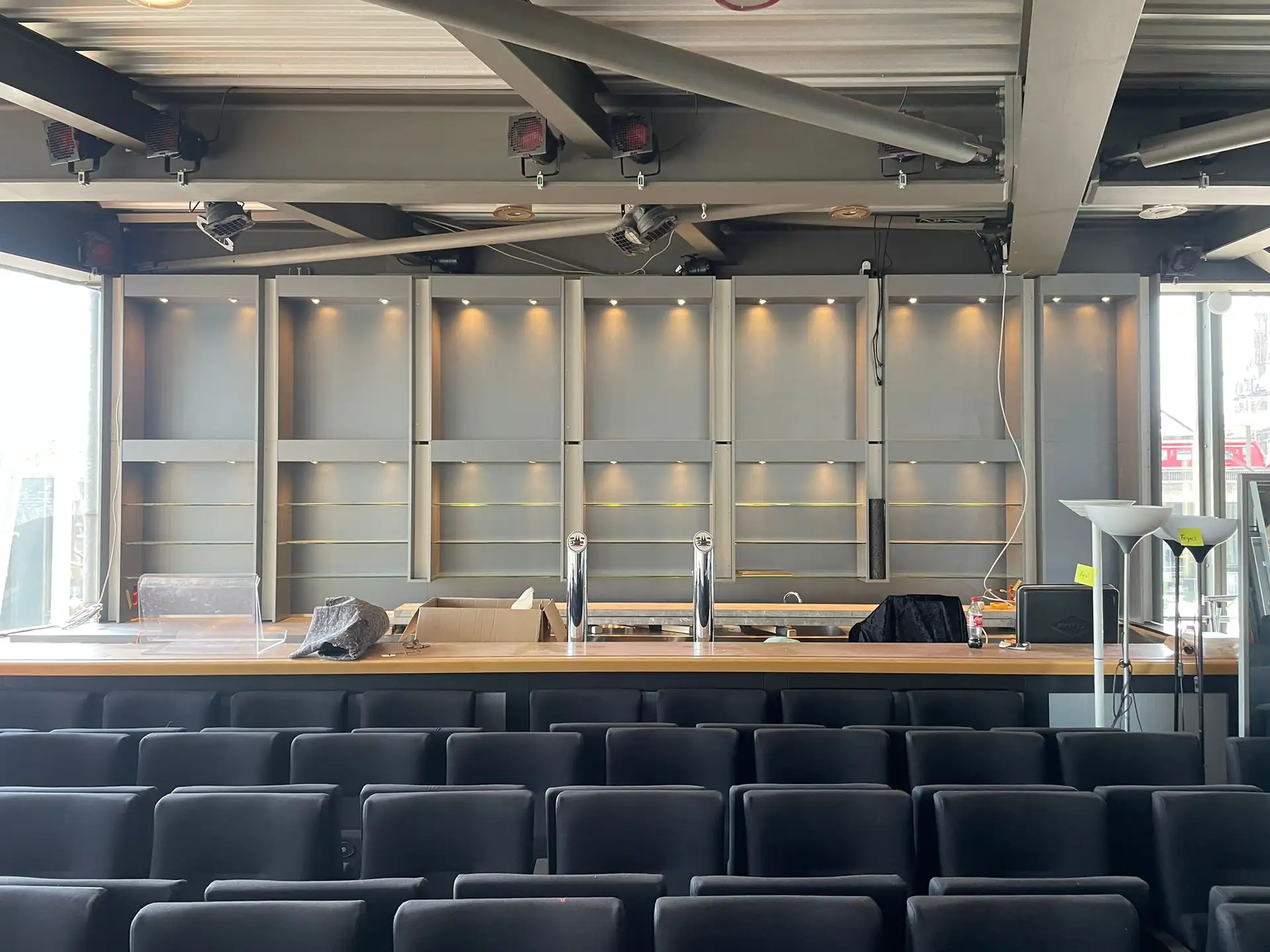 Für den Eingangsbereich dieses Theaters haben wir fließende Architektur sichtbar gemacht. Sanfte Rundungen, maßgefertigte Wandelemente und eine Lichtführung, die jeden Raum weich und einladend wirken lässt. Alles wurde präzise geplant, millimetergenau gefertigt und vor Ort nahtlos in die besondere Raumgeometrie integriert.