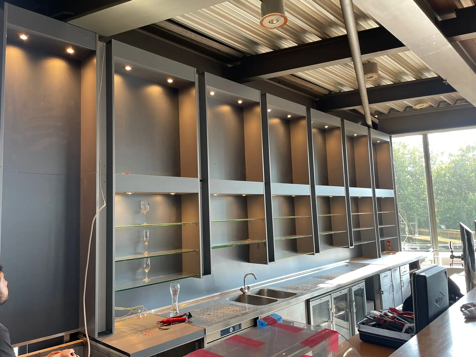 Unsere maßgefertigten Möbel, Thekenanlagen und Wandverkleidungen fügen sich nahtlos in das architektonische Gesamtkonzept ein. Sitzbereiche, Tische, Regale und Bar-Elemente wurden exakt geplant, präzise gefertigt und vor Ort perfekt eingepasst – für einen Raum, der nicht nur schön aussieht, sondern auch funktional und langlebig ist.