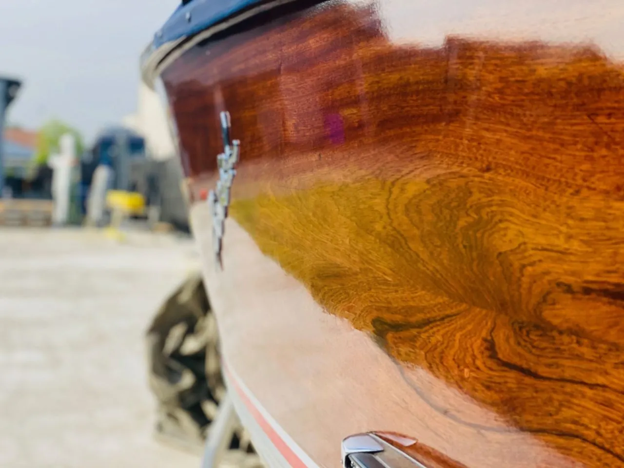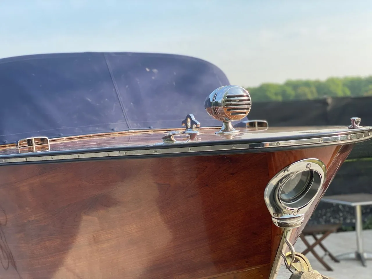 Und genau diese Geschichte haben wir in diesem Restaurationsprojekt bewahrt – Schicht für Schicht. In unserer Werkstatt wurde das Boot bis auf die Substanz geprüft, fachgerecht geschliffen, neu aufgebaut und mit hochwertigen Lacken veredelt. So entsteht eine Oberfläche, die nicht nur glänzt, sondern schützt. Jede Rundung, jeder Beschlag, jede Kante wurde mit größter Sorgfalt behandelt, um den Originalcharakter zu erhalten – und gleichzeitig eine langlebige, moderne Widerstandsfähigkeit zu schaffen.