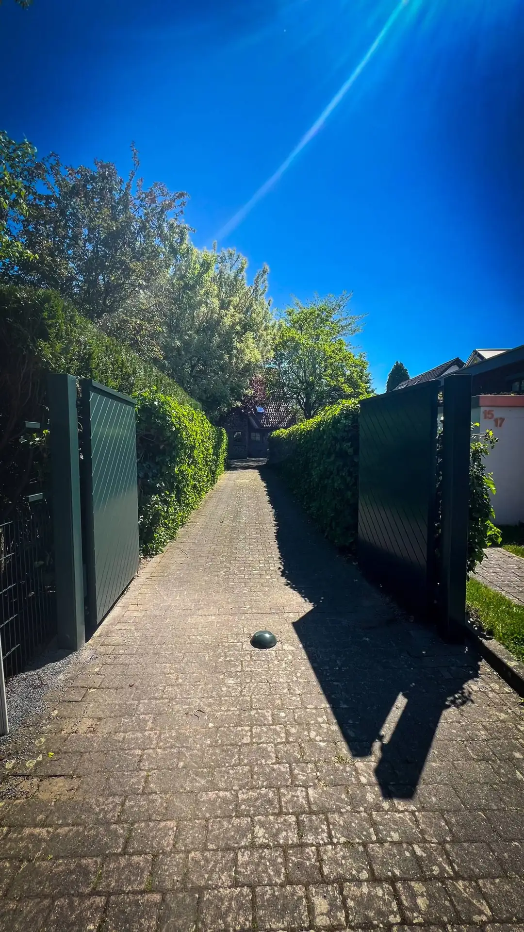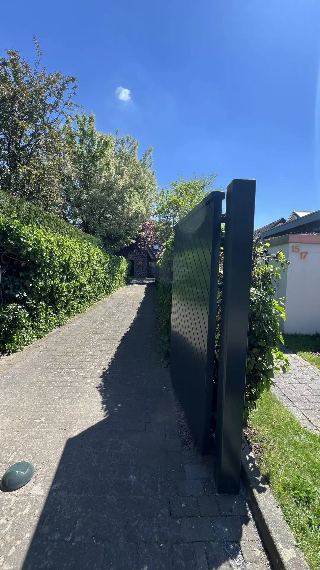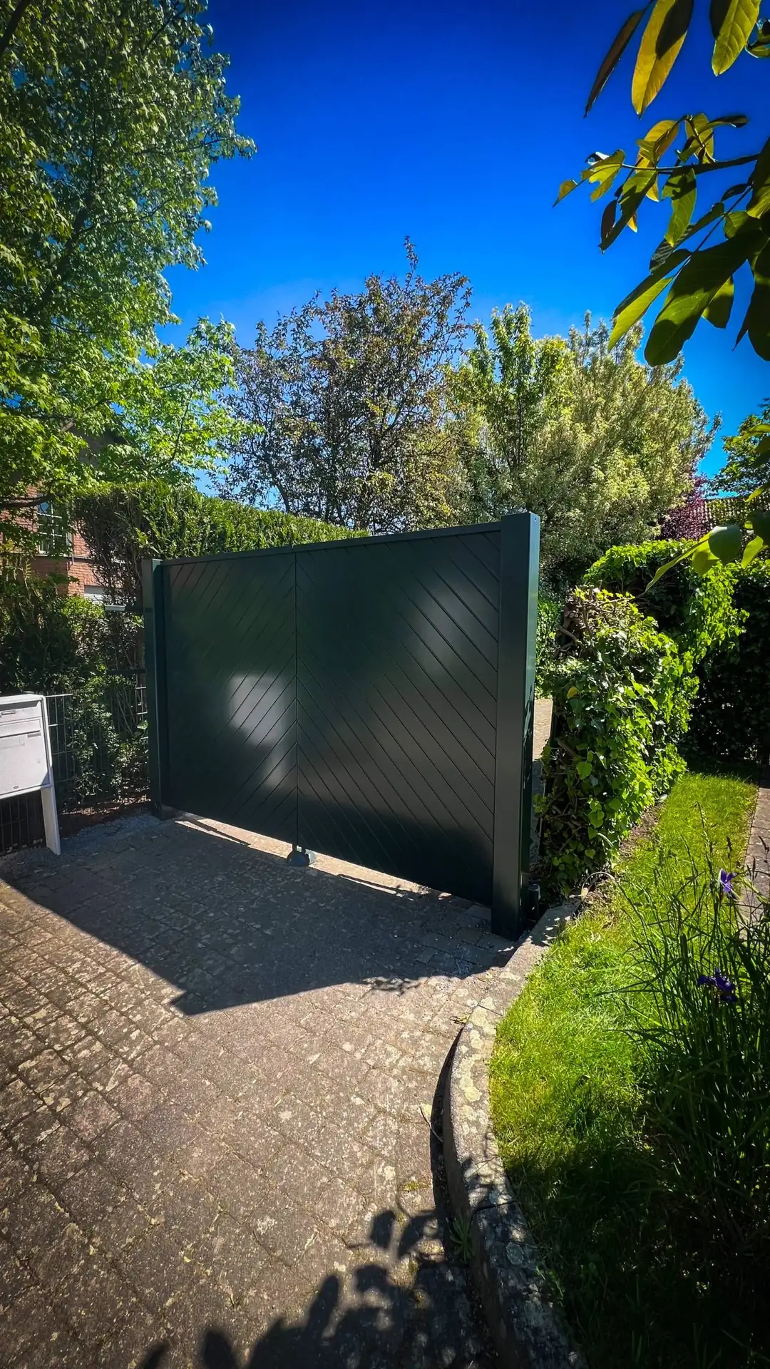 - Perfekt integriert in Mauerwerk, Fassade und Einfahrtssituation.