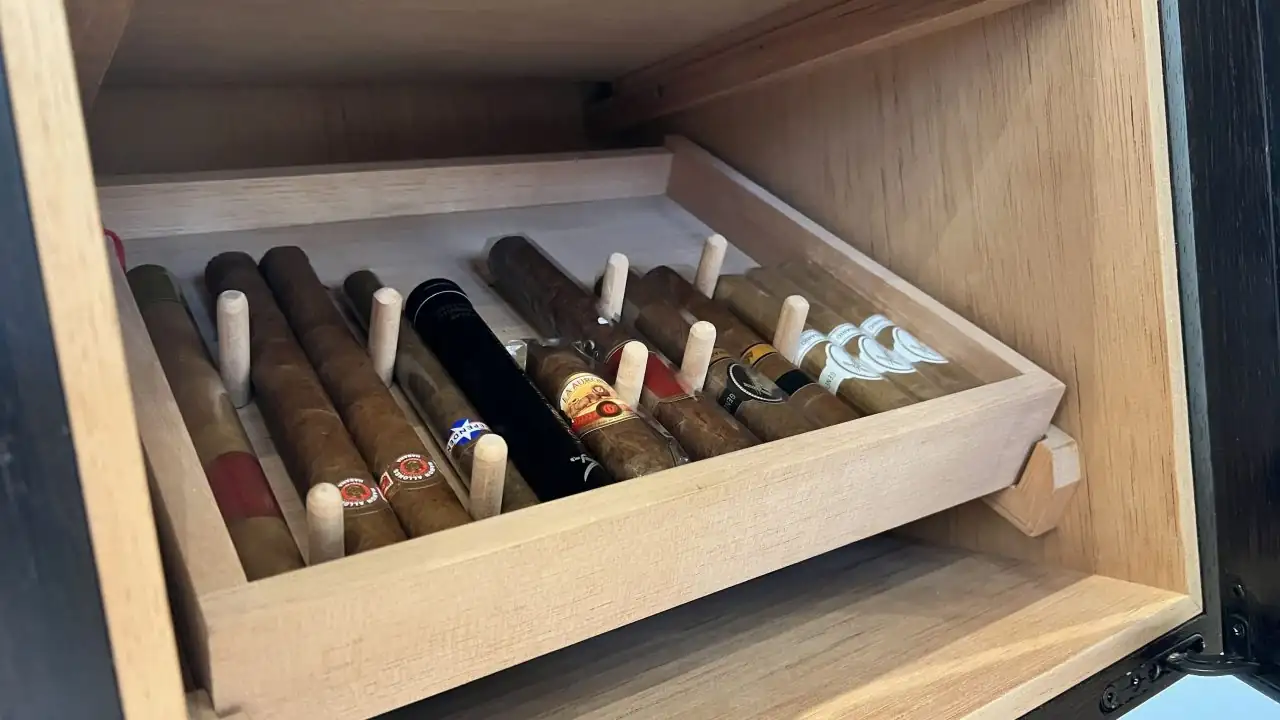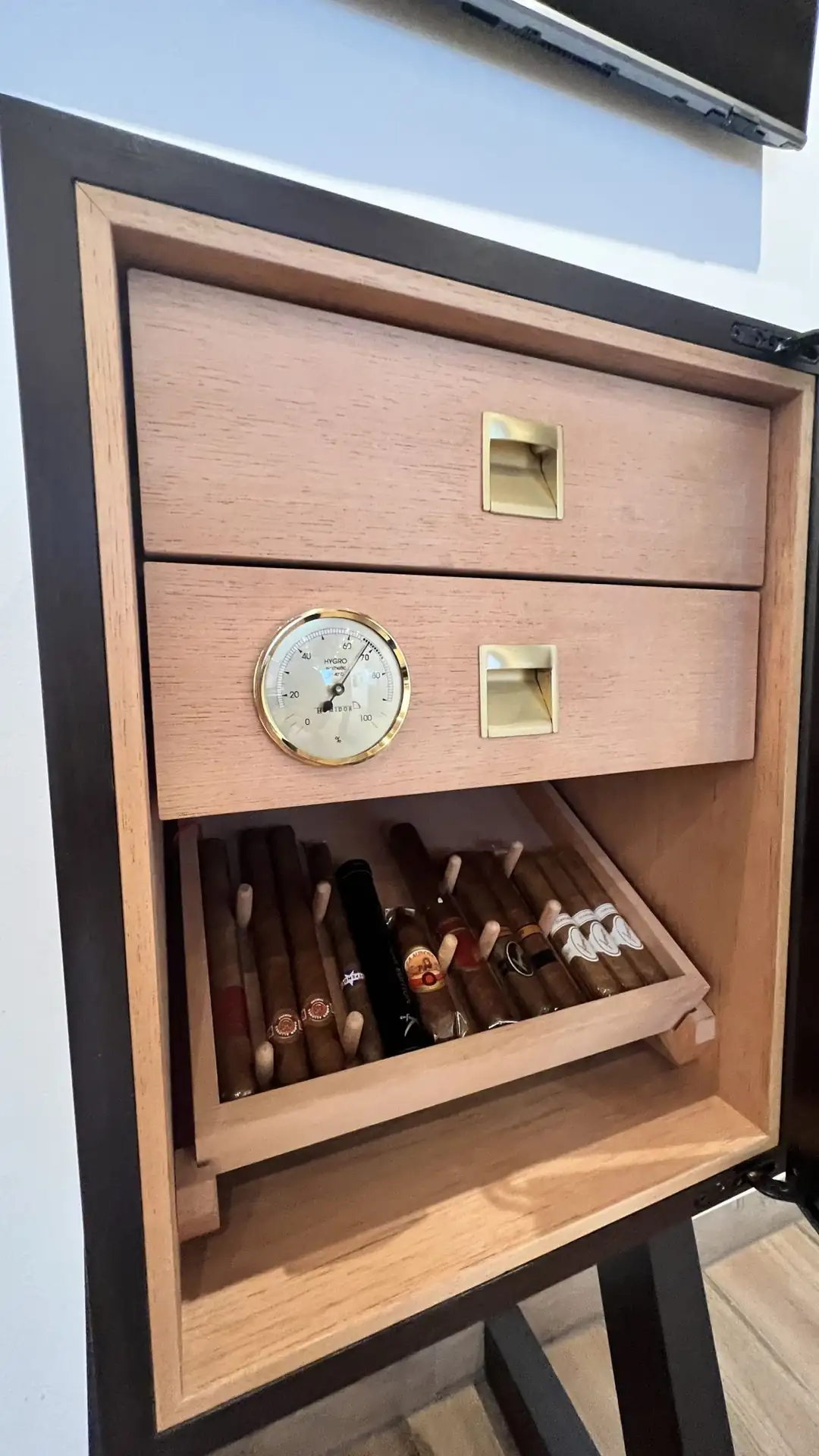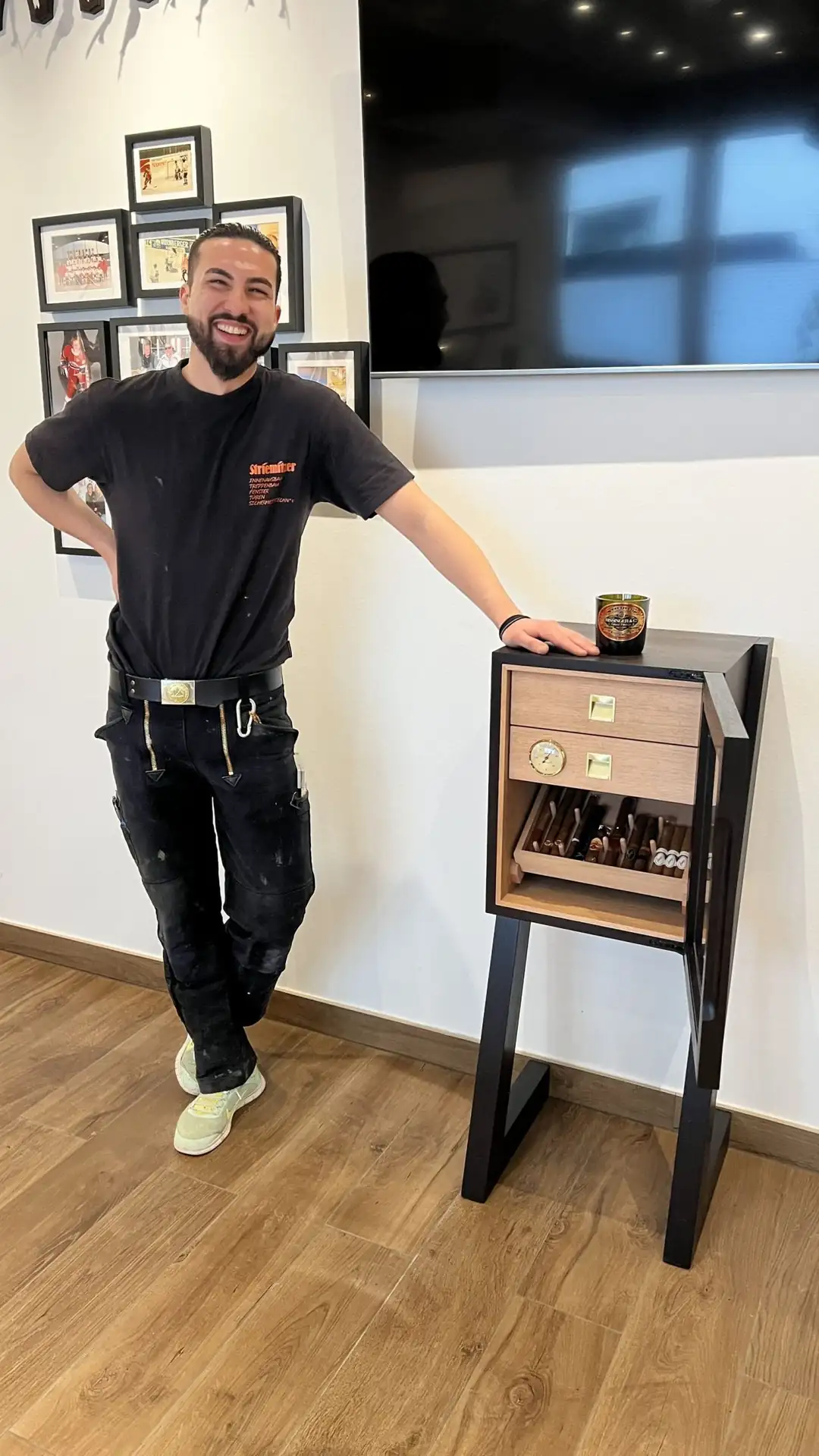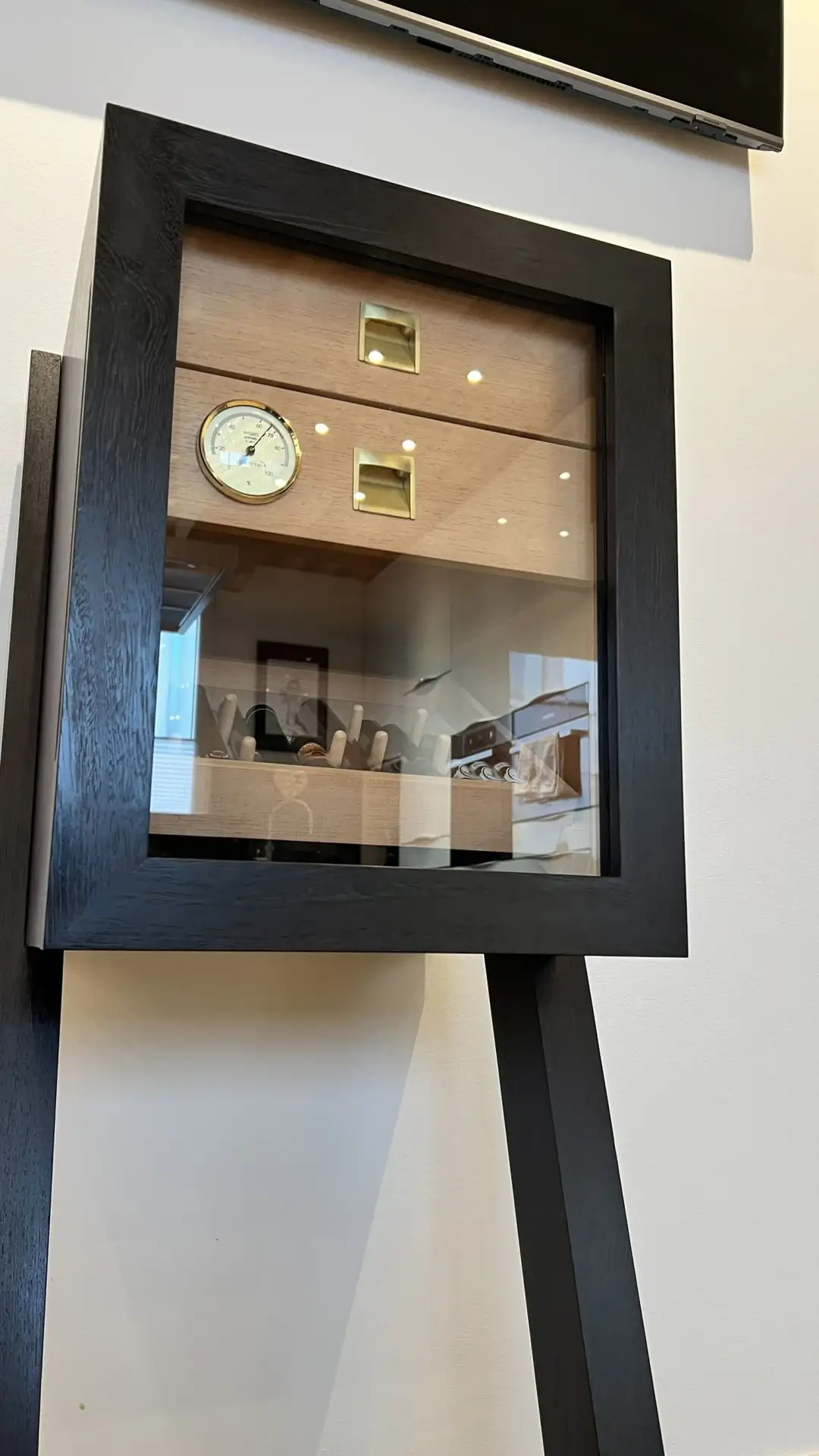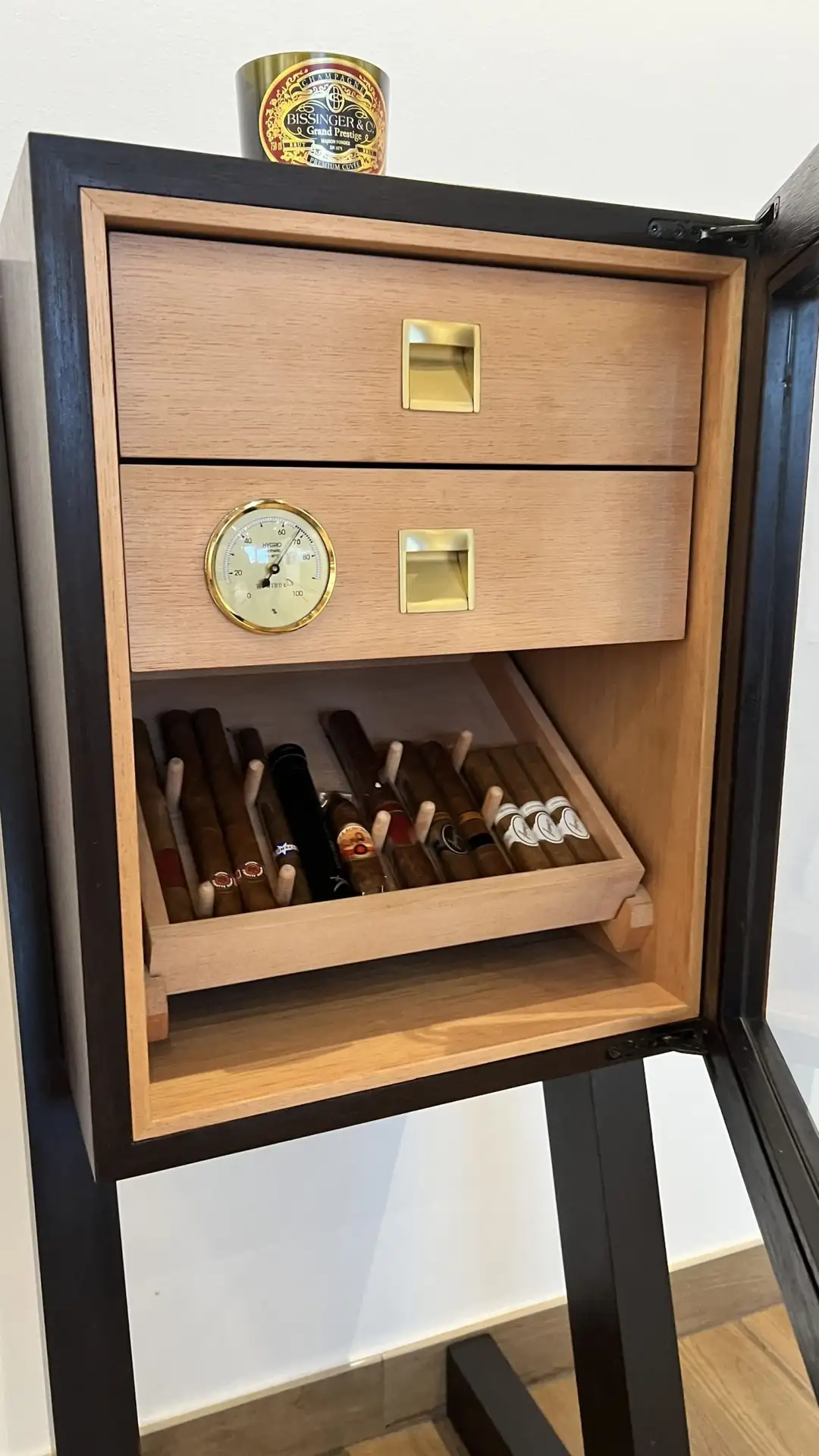 Dieses Gesellenstück zeigt, wie viel Präzision und Feingefühl im Detail stecken. Ein freistehender Humidor, der Funktion und Gestaltung vereint: sauber gearbeitete Schubladen, ein integriertes Hygrometer, fein abgestimmte Proportionen und hochwertige Materialien, die bewusst sichtbar bleiben.