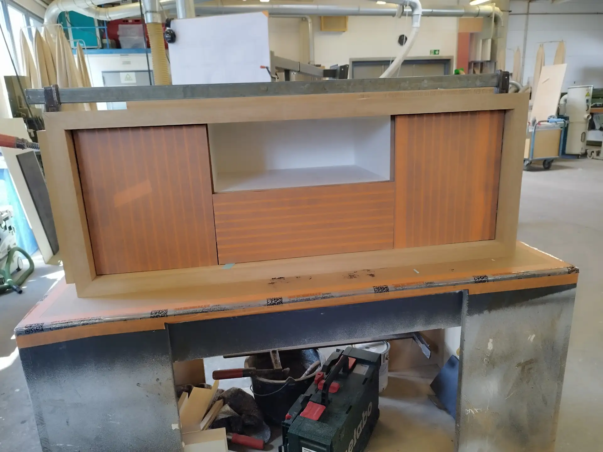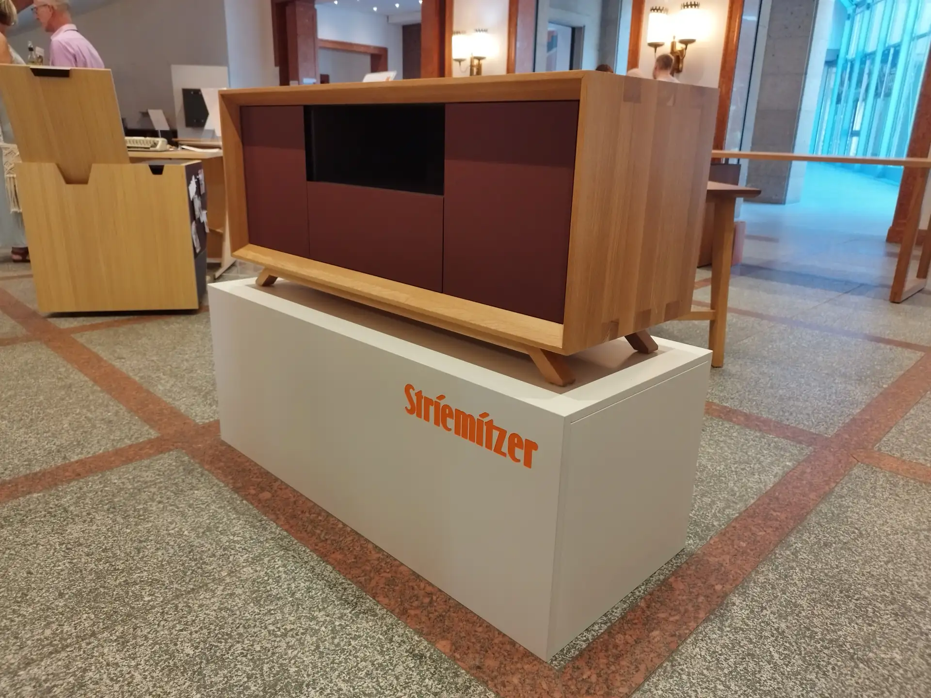 TV-Sideboard als Gesellenstück – klare Linien, starke Details.